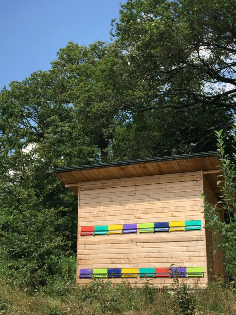 La plupart de nos ruches sont abritées dans un rucher-chalet, qui les protège des rigueurs du climat du Lévézou et des animaux sauvages.